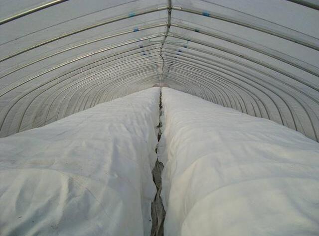無紡布用于蔬菜生產(chǎn)。 15-20克/平方米的無紡布可用于覆蓋溫室中的浮動表面和露天地面,如萵苣,生菜,菠菜和苜蓿在棚子里,以及芹菜,綠色蔬菜和菠菜在空地上。無紡布,重30~40克/米,可作為溫室雙通道保溫簾,或覆蓋小環(huán)棚。無紡布也可以放置在雙層薄膜的中間,用于冬季的保溫和覆蓋。